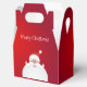 Au-delà d'un ballotin rouge vif et festif avec un Père Noël mignon qui regarde à l'avant et à l'arrière. Noël.