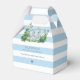 Personnalisez facilement ces belles boîtes de fête d'anniversaire avec vos détails de fête. Nos ballotins rayés bleus avec un bébé éléphant et rayures sont parfaits pour les fêtes d'anniversaire, bien qu'il puisse être customisé à d'autres occasions, comme les baby showers.