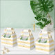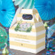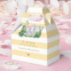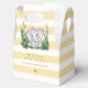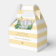 Personnalisez facilement ces belles boîtes de fête d'anniversaire avec vos détails de fête. Nos ballotins rayés jaunes avec un bébé éléphant et des rayures sont parfaits pour les fêtes d'anniversaire des filles, bien qu'il puisse être customisé à d'autres occasions, comme les baby showers.