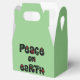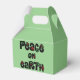 Graphique à thème de Noël mignon et significatif avec des signes de paix rouge et vert accentué dans chaque lettre. Wishing Peace on Earth... à Noël et tous les jours.