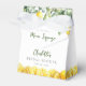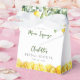 Ces boîtes de faveur de lancement de mariage aux citrons aquarelles modernes 'elle a trouvé son main squeeze' peuvent être personnalisées avec vos informations en typographie élégante. Conçues par Thisisnotme©