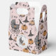 Cette boîte de faveur d'événement personnalisée pour Halloween, à la fois élégante et artistique, présente des illustrations dessinées à la main à l'encre noire par Nathalie Portet. Le nom personnalisé, l'événement et la date sont imprimés des deux côtés. Sur un beau fond rose blush, des images de landaus anciens, de chapeaux de sorcière, de corbeaux noirs, de citrouilles, de toiles d'araignée, de chaudrons bouillonnants et de petits champignons tachetés ornent cette boîte de faveur de fête. Un cadre circulaire met en valeur votre message de vœux personnalisé (« Merci » peut être changé en « Joyeux Halloween, Félicitations, Joyeux 1er Anniversaire », etc.) Nom et Date. Idéal pour les Baby Showers Halloween, 1er Halloween, 1er Anniversaire, bébé d'