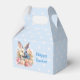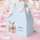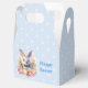 Une petite boîte à cadeau avec une image aquarelle. Un petit lapin gris blanc entouré d'une guirlande de roses roses et pêche. Pour les amateurs de lapins et les thèmes de Pâques, les anniversaires et les fêtes prénatales.