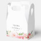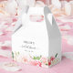 Boîte de cadeau de fête de fiançailles chic et élégante commence par un arrangement de bordure inférieure féminin. Le nom de la mariée, la fête de fiançailles et la date sont au-dessus. Cette boîte de cadeau fait partie de la collection La Pivoine Rose Rustique qui contient les éléments nécessaires pour créer facilement une fête de fiançailles unique et personnalisée.