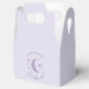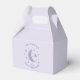 Ballotin baby shower sucré pour votre petite soirée à thème scintillante. Il y a une forme de lune et des étoiles dans la fausse feuille lavande. Customisez ce produit en ajoutant le nom de la maman à être et la date de l'événement.