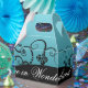Ballotin de style Gable avec une image de vignes noires amusantes sur bleu sombre et "Alice’s Adventure in Wonderland" en écriture blanche en bas. Voir confettis assortis, sac de faveur, étiquette de faveur carré, sacs cadeaux et papier d'emballage. Voir l'ensemble de la collection de Ballotins Wonderland dans les TOUCHES SPÉCIALES | Section Favoris.