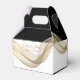 Image d'un voile de couleur dorée drapé à l'avant et sur les côtés de ce ballotin noir et blanc avec poignées. Dos clair et les nouveaux mariés des noms personnalisés se mêlent à l'avant avec l'image du voile. Exemples de noms affichés. Customisez cet objet si vous le souhaitez.