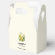Tiny favor box with a lovely illustration of a bouquet of lemons surrounded by white blossoms leaves and sprigs.
