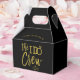 Faites que les gens fantastiques de votre fête de mariage se sentent extra spécial et apprécié avec ces boîtes personnalisées noir et or gable. Le design comporte les mots "I do team" dans un style de script élégant et moderne. Le mot 'do' comporte une bague en diamant brillante à la place de la lettre 'O' pour signifier le mariage de la mariée et du marié. Ce design est entouré de spots pour vos informations uniques et les détails du texte.