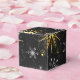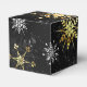 Arrière - plan de Noël noir avec des flocons de neige en or et bijoux noirs. Des flocons dorés. Noël.