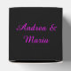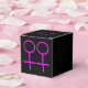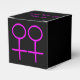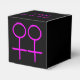 Ce ballotin génial est conçu pour les lesbiennes. Il comporte deux symboles féminins roses côte à côte. L'arrière - plan est noir. Il y a du texte personnalisable en haut de la boîte pour mettre les noms du couple heureux.