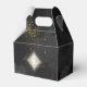 Un arrière - plan d'aquarelle dans les tons gris-fusain au noir est surmonté d'une abstraite de lignes dorées fines et d'effets lumineux scintillants pour créer les pièces de cette belle suite mariage. La boîte de faveur de mariage montrée ici présente également un cadre en forme de losange dégradé pour tenir les initiales de la mariée et du marié et la date du mariage. Recherchez ID867 pour voir d'autres pièces et choix de couleurs pour cet ensemble.