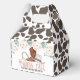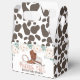 This chic "Thanks Y'all" cowgirl's baby shower favor box features a white background with roses, a cowboy hat, cowboy boot, and a lead on a white background with a cow pattern. Personalize for your needs. You can find matching products at my store.
