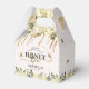 De mignons ballotins d'anniversaire de ruche d'abeille avec un arrière - plan de nid d'abeille, des gouttes de feuille d'or faux, des fleurs d'aquarelle blanche, des abeilles, et un élégant modèle de remerciement qui est facile à personnaliser.