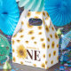 Belle boîte de fête de 1er anniversaire avec notre petit thème de tournesol soleil. Vous pouvez facilement customiser le nom et la date. Parfait pour les bébés d'été qui sont Turing un.