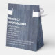 Modèle d'emballage de produit commercial denim bleu robuste et audacieux. Ce design a un logo de société sur le devant de la boîte que vous pouvez remplacer par votre propre icône de logo. Il y a du texte personnalisé - l'un pour le nom ou le type du produit, et l'autre pour plus de détails comme une saveur, une couleur ou un autre thème. Au verso de l'encadré, il y a du texte personnalisé pour les informations importantes sur les produits pour les clients et les clients - peut-être le stockage, l'utilisation, les instructions de soin, peut-être les dates de fabrication, l'utilisation par, ou mieux avant, peut-être une liste d'ingrédients ou d'informations nutritionnelles, et tout autre élément qui peut être requis ou que vous voudriez pour des fins de marketing. Ce design modèle est robuste et à la mode, mais robuste, avec le look tissu denim, le texte gras et votre propre logo, cela rendrait un produit avec ces caractéristiques et ferait un grand design pour l'emballage du produit ou l'emballage cadeau client.