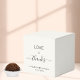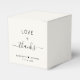 Chic ballotin crème légère pour votre mariage avec "love + grâces" en typographie moderne simple et un élégant script de calligraphie avec des swashes, vos prénoms unis par un coeur et votre date mariage.