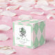 Ces mignonnes boîtes-cadeaux "Lucky Little Merci" en baby shower féminin présentent un chic chariot de bébé victorien tiré à la main, orné d'un shamrock et de tons verts doux, le tout contre une adorable motif Jacquard rose et vert assorti. Personnalisez avec les détails de l'événement. Imprimé à l'avant et à l'arrière. Ces boîtes-cadeaux sont de la collection de baby showers "A Lucky Little Shamrock".