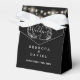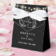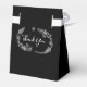 Un élégant contenant de faveur de mariage comportant de jolies lumières de chaîne et un feuillage floral dessiné à la main sur un fond noir. Un moyen parfait de dire merci à vos invités ! Conçu par Thisisnotme©