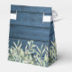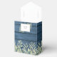 Élégante boîte de faveur de réception de mariage comportant de jolies lumières de chaîne et des feuilles aquarelles délicates encadrant le nom de la future mariée et la date spéciale dans une typographie moderne sur un fond en bois bleu rustique. Vous pouvez la personnaliser avec votre propre message de remerciement sous le couvercle. Un moyen parfait de dire merci à vos invités ! Conçu par Thisisnotme©