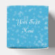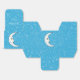 Cette boîte de fête est bleue recouverte de minuscules étoiles blanches ouvertes et d'une lune blanche croissant avec un visage élégant sur le panneau avant. Customisez votre texte en haut de la zone avec le modèle.