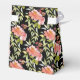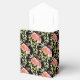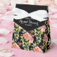 De magnifiques fleurs aquarelles roses et rouges et une verdure élégante sur fond noir mettent en valeur ces boîtes de fête de mariage de style tente de mariage enrubannées. ARTICLES CORRESPONDANTS dans notre magasin.