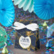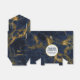 Une boîte personnalisée de mariage avec un élégant et élégant arrière - plan de marbre bleu marine et or. Couché sur le dessus est un cercle avec une fausse bordure en feuille d'or avec votre texte personnalisé à l'intérieur.