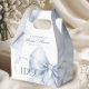 Cette élégante boîte présente un charmant nœud bleu parfait pour une douche de mariage "quelque chose de bleu". Conçue dans une aquarelle pastel douce, elle combine un script manuscrit romantique avec des éléments fantaisistes tendance. Idéal pour une douche de mariage bleu poussiéreux.