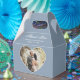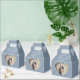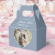 Photo mariage bleu poussiéreux sur mesure merci ballotin avec cadre photo en forme de coeur.
