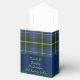Motif écossais écossais moderne bleu et vert plaid plaid, cette élégante boîte de faveur de mariage traditionnelle formelle, peut facilement être personnalisée avec des noms de mariée et de mariée aux modèles pour créer un élégant ballotin rétro unique pour vos occasions spéciales et les célébrations, partie d'un ensemble coordonné de suite mariage.