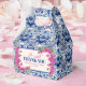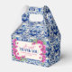 Célébrez l'amour en pleine floraison avec nos boîtes de bonbons de fête prénuptiale en carreaux bleus et bougainvillée rose. Inspirées par l'élégance des carreaux méditerranéens et la romance de la bougainvillée en fleurs, ces boîtes de bonbons sont un mélange parfait de charme et de sophistication. Cette boîte de bonbons saisissante présente un design époustouflant de délicates fleurs de bougainvillée roses sur un fond de carreaux bleus complexes. Personnalisez ce design intemporel avec vos propres détails. Disponible en plusieurs options de taille.