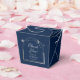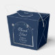 Celestial Blue Silver Sun Moon Astronomy Wedding Favor Boxes présente un élégant soleil argenté, une lune et des étoiles avec un cadre argenté sur un arrière - plan bleu. A l'intérieur est votre ballotin personnalisé merci informations. Conçu par Evco Studio www.zazzle.com/store/evcostudio