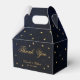 Un ballotin bleu marine foncé avec des étoiles dorées pour un thème mariage marine et céleste doré. De part et d'autre, il contient le Merci du message et les noms dans la calligraphie élégante (et la date en chiffres plus petits sous les noms). Tout le texte est doré et peut être modifié. La photo de nuit étoilée est de Felix Mittermeier de Pixabay et est gratuite pour un usage commercial.