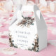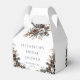 Ces boîtes de faveurs de mariage champêtre floral aquarelle moderne et élégante avec cônes de pin peuvent être personnalisées avec vos informations en typographie bleue stylisée. Conçues par Thisisnotme©
