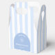 Cette élégante décoration ballotin d'inspiration côtière est ornée d'un arrière - plan rayé bleu et blanc avec une forme d'arc branchée et un motif de coquillage. Toutes les couleurs (y compris le coquillage et l'arc) peuvent être changées par vous à l'intérieur de l'outil de conception.