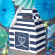 Bleu marine et blanc rayé boîte de faveur mariage. Idéal pour un mariage de la Marine (militaire) ou d'une maison de lac. Design dispose d'une corde en forme de coeur avec ancre et initiales de couple au milieu. Personnalisez-le avec vos détails mariages.