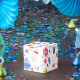 Aquarelle botanique moderne de fleurs sauvages bleues et oranges sur un arrière - plan blanc. Un magnifique ballotin de coordination pour correspondre à votre fête. Vous pouvez modifier le texte en fonction de votre célébration.