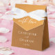 Cette boîte de faveur de mariage en or rustique présente une élégante typographie blanche With Love sur un dégradé de tons de terre sous-estimé. Les teintes simples orange pâle et marron suivent les tendances d'automne actuelles pour un mariage bohème cet automne. Complétez l'aspect sous-estimé avec votre script minimaliste sur la fondu de couleur.