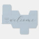 Chic et design. Cette boîte de faveur de mariage comporte une police de caractères contemporaine en forme de pinceau gris foncé dans le texte de votre choix. Choisissez de dire "Merci ou bienvenue". Un petit message est inclus au verso pour les invités, ainsi que la date du mariage et les noms des couples. La ballotin est habillée d'une veste bleue poussiéreuse et chic. Personnalisez pour en faire votre propre cadeau spécial.