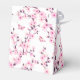 Cette boîte de faveurs de douche nuptiale de cerisier en fleurs présente de jolies fleurs de cerisier roses sur fond blanc. Boîte botanique avec un texte de remerciement, un texte de douche nuptiale et un nom de future mariée personnalisé dans une élégante écriture calligraphique.