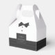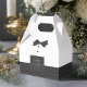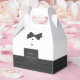 Ce ballotin de style gable, présenté ici avec une cravate d'arc noir et des boutons design, a un modèle pour ajouter facilement vos propres noms et date mariage. Dotée de graphismes épurés qui font écho aux détails raffinés d'un tuxedo classique, cette collection mariage comprend des éléments tels que des motifs plissés, des blancs immaculés et des accents noirs brillants pour une ambiance moderne et personnalisée. Parfait pour les couples à deux mariés qui aiment le minimalisme audacieux, ce design offre une esthétique élégante et sans effort, à la fois intemporelle et sophistiquée. Recherchez ID1090 pour voir d'autres pièces dans ce jeu de mariages coordonné.