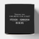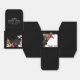 Cette élégante ballotin est conçue pour laisser une impression durable à vos invités. L'arrière - plan noire est ornée de fleurs orange vif et rousses, agrémentée d'une végétation luxuriante, ajoutant une touche dramatique mais sophistiquée. L'avant de la boîte affiche un message "Merci" en gras, tandis que le dessus se lit, "Merci pour être notre invité", qui peut être customisé à votre libellé préféré. En outre, les noms et la date ci-dessous de ce message sont également personnalisables, vous permettant d'ajouter une touche personnelle à chaque faveur. Parfait pour les événements mariage ou spéciaux, cette boîte combine style et gratitude d'une manière merveilleusement unique.