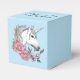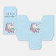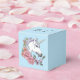 Une licorne blanche en profil est entourée de fleurs roses, coralliennes et lavande contre un arrière - plan bleu doux.