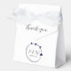 Merci à vos invités de l'événement mariage avec un ballotin avec un ruban blanc qui présente une couleur bleu marine, une couronne de coeur simple qui présente les initiales de la mariée et du marié et la date du mariage en écriture grise et stylisée. Modifiez votre ballotin pour remplacer les initiales et la date par la vôtre.
