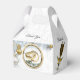 Des décorations d'or et d'argent pétillantes entourées de feuillage festif vert sauge, avec de la neige fraîchement tombée dans un pays merveilleux d'hiver, pour votre jour de mariage sur le thème de Noël.