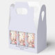 Boîtes de mariage avec une image de tour Eiffel stylisée entourée de jolis papillons et de fines fleurs de jardin.