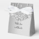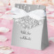 Personnalisez ces boîtes de parties scintillant à goutte d'argent pour le mariage. L'avant dit Avec amour et Merci ( mais peut être édité ) et l'arrière a de la place pour vos noms et date mariage.