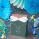 Le rabat avant de cette élégante boîte moderne de faveur de mariage comporte une bordure en parties scintillant en or rose. Le texte personnalisable combine écriture rose rose pâle et polices de cuivre sur un grand écran sur un arrière - plan vert foncé.