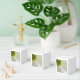 Customisez la jolie boîte blanche de mariage avec les noms personnels de la mariée, du marié et de la cérémonie de mariage. Ces élégantes boîtes de faveur de mariage botanique personnalisées comprennent une photographie florale de pétales de fleurs de marguerite blanche avec un centre jaune vert. Idéal pour une élégante fête blanche fleurie ou marguerite, douche ou thème mariage.