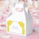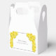 Ce design présente des roses jaunes rustiques. Les roses jaunes sont complétées par une bordure noire élégante. Les tons jaunes des fleurs roses créent une atmosphère de jardin de campagne fleuri et rustique. Design ballotin de mariage élégant avec des éléments modernes. Des invitations de mariage et d'autres articles de papeterie sont également disponibles.